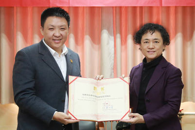党委副书记张硕秋为山东梅格彤天电气有限公司执行总裁谷青松颁发了顾问教授聘书。