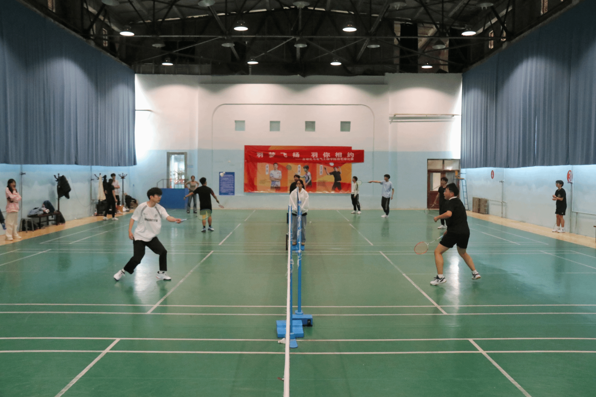 在整个比赛过程中,裁判员同学严格按照羽毛球比赛规则进行判罚和记分,确保了比赛的公平公正。参赛选手们不仅在比赛中展现了个人风采,也培养了合作精神和团队意识。本次比赛的成功举办,不仅提升了学生的身体素质,激发了学生对体育运动的热爱,丰富了校园文化生活,还促进了学生之间的交流与互动,为构建自动化与电气工程学院和谐、健康的学院文化做出了积极贡献。