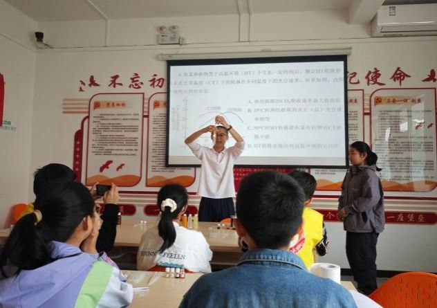 随着王老师宣布实验正式开始,现场迅速进入紧张而有序的动手操作环节。在“光合作用产生氧气”实验区域,当同学们亲眼目睹植物通过光合作用释放的氧气成功使带火星的木条复燃时,惊叹声此起彼伏;在“探究馒头在口腔中的变化”实验台前,大家通过“为什么馒头越嚼越甜”这一有趣问题切入,借助实验清晰了解到唾液对淀粉的消化分解作用;观察胆汁对脂肪的乳化作用实验中,食用油在乳化液里呈现出独特状态,让同学们直观领悟到胆汁的作用奥秘;而在“比较不同果蔬中维生素C的含量”实验中,同学们专注地向高锰酸钾溶液逐滴加入不同果蔬汁,见证溶液褪色的神奇过程,通过“需要12滴橘子汁才能让高锰酸钾溶液褪色”等现象,得出橘子汁中维生素C含量多于柠檬的结论。