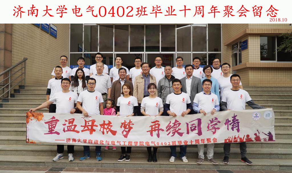 电气0402班同学再次相聚母校,共同追忆同窗往事,感恩母校、学院培养。原控制科学与工程学院院长、现校办主任张勇,78级老校友代表、原信息科学与工程学院党委书记范平,学院党委书记赵道会、院长崔焕勇、副院长王中华及时任班主任张沂红,学院老师乔佳等与同学们在第一教学楼前合影留念。随后,同学们参观了学院实验室和历史成就展。